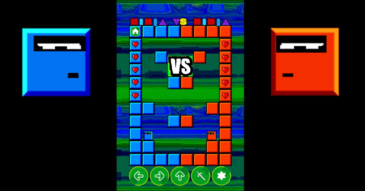 Ninja Versus Ninja is a non-violent simple yet fun battle arena fighting game. Proudly play as the Blue Ninja to fight your evil arch-nemesis Red Ninja. You'll unlock 30 action-filled arenas to battle Ninja to Ninja.*left* = move left*right* = move right*up* = jump*up*..*up* = double jump*o* = sword*p* = throw star